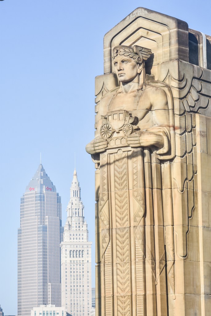 Famous Clevelander Bob Hope’s not-famous father, Harry Hope, was one of the local stonemasons who carved the statues, which were designed by Henry Herig and Frank Walker. An image of a Guardian is now on display where the LeBron banner used to be, and minor-league soccer team Cleveland SC uses the image of a Guardian in their badge.